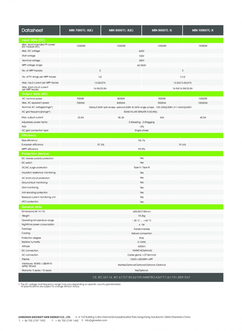 Biến tần hòa lưới 1 pha Growatt MIN 10000TL-X