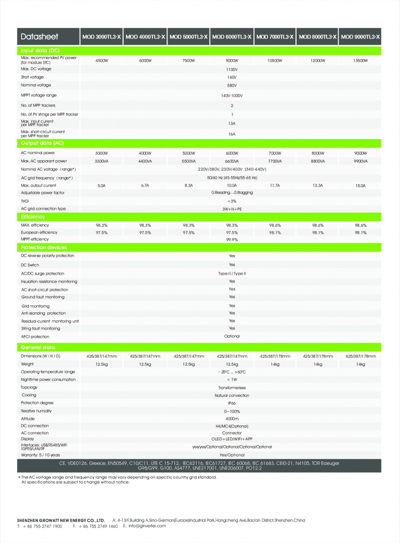 Biến tần hòa lưới 3 pha Growatt MOD 5000KTL3-X