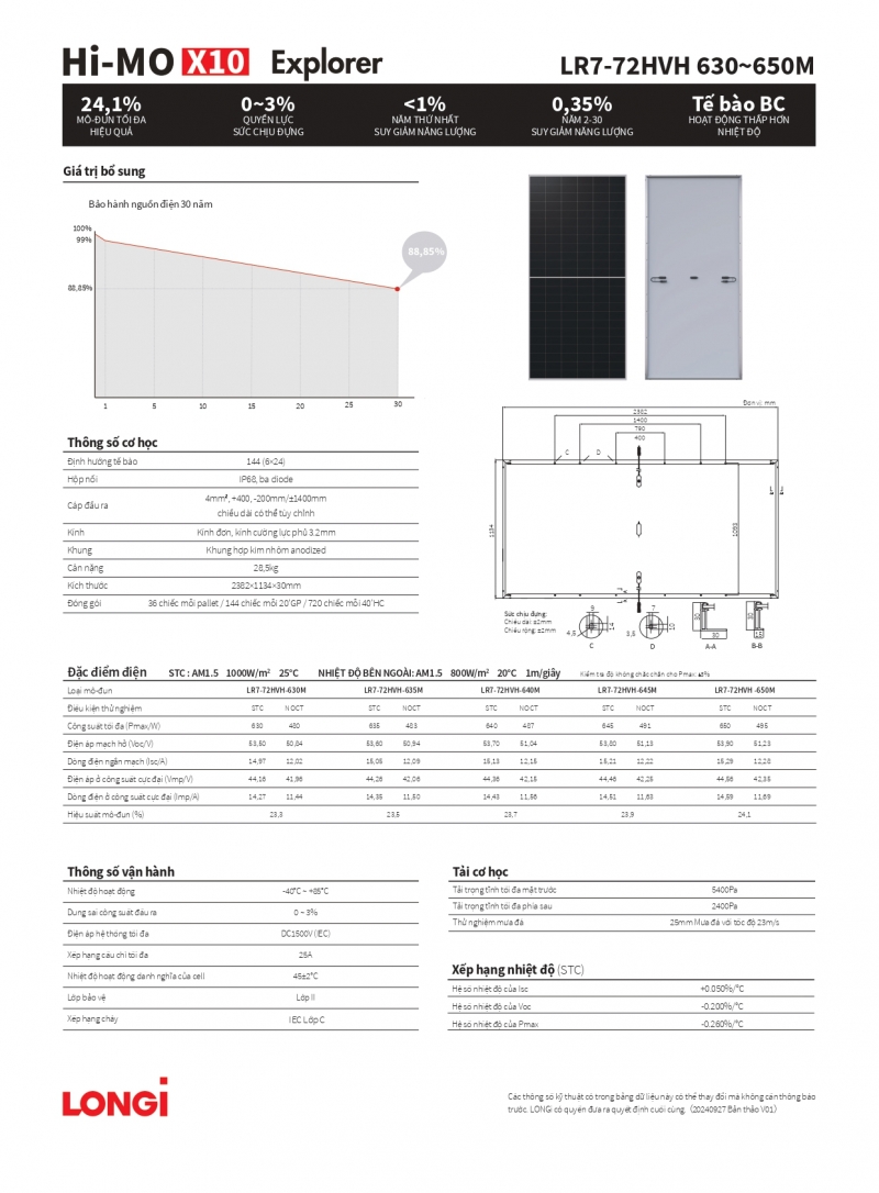 Tấm pin năng lượng mặt trời Longi N-type 645W